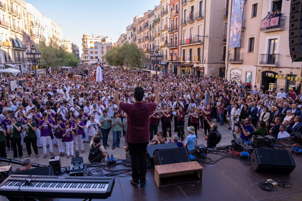 Minuts abans de l’inici de la Cercavila de Santa Tecla, aquest dilluns i des del Balcó de l’Ajuntament, tots els músics del Seguici Popular de la ciutat i la Banda Unió Musical uns 200, han tocat a l’uníson aquesta peça, dirigits pel mestre Jordi Masip, director de la BUMT.