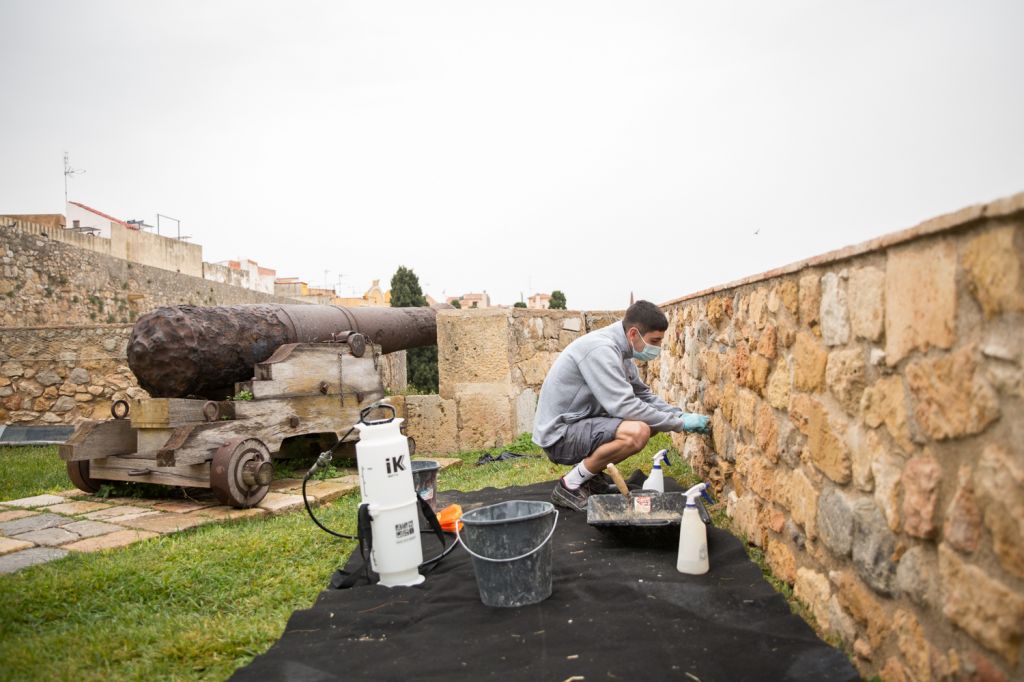 consolidat la pedra, mitjançant l’aplicació de morter de calç en els farciments i juntes. Aquest treball ha anat a càrrec de set alumnes de la Casa d’Oficis,