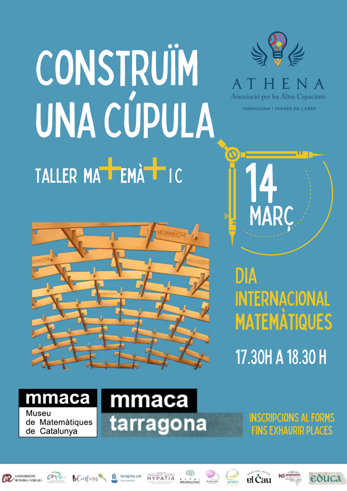 Tarragona se suma aquest dissabte 14 de març al Dia Mundial de les Altes Capacitats amb un taller matemàtic que es farà a les 17.30 h al Museu de les Matemàtiques de Catalunya a Tarragona. La jornada és organitzada per ATHENA Associació d’Altes Capacitats Tarragona, una entitat formada per famílies de nens, nenes i joves amb altes capacitats intel·lectuals (AACC) de la província de Tarragona i de les Terres de l’Ebre.