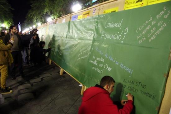 Publicado enNotícia Mig centenar de mestres de Tarragona converteixen els plafons electorals en pissarres per denunciar les retallades per Redacció 22/11/2012