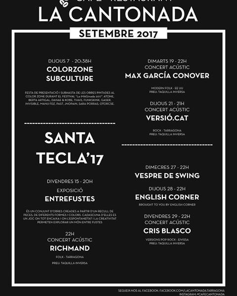 Publicado enJa Tardes Santa Tecla’17: Actes i concerts a la Terrasseta dels Jardins de Saavedra per festes!!! per Redacció 12/09/201727/04/2021