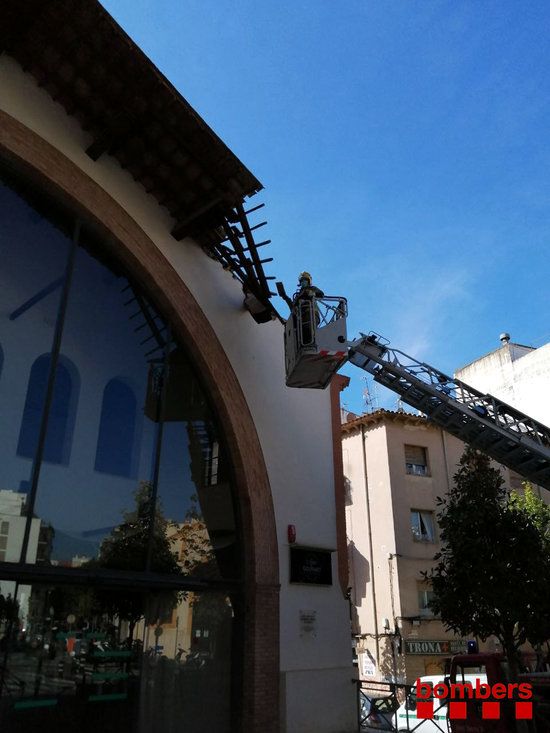 Efectius dels Bombers han intervingut aquest dissabte al matí per sanejar la teulada de l’edifici de la Cooperativa de Cambrils, situat al carrer Mossèn Jacint Verdaguer. Tot i que no s’han hagut de lamentar danys personals, s’ha trencat una biga de la façana porxada amb voladís de l’immoble i ha caigut part del sostre al carrer. L’actuació s’ha allargat durant més de dues hores i hi han intervingut dues dotacions del cos. L’incident no ha causat ferits.