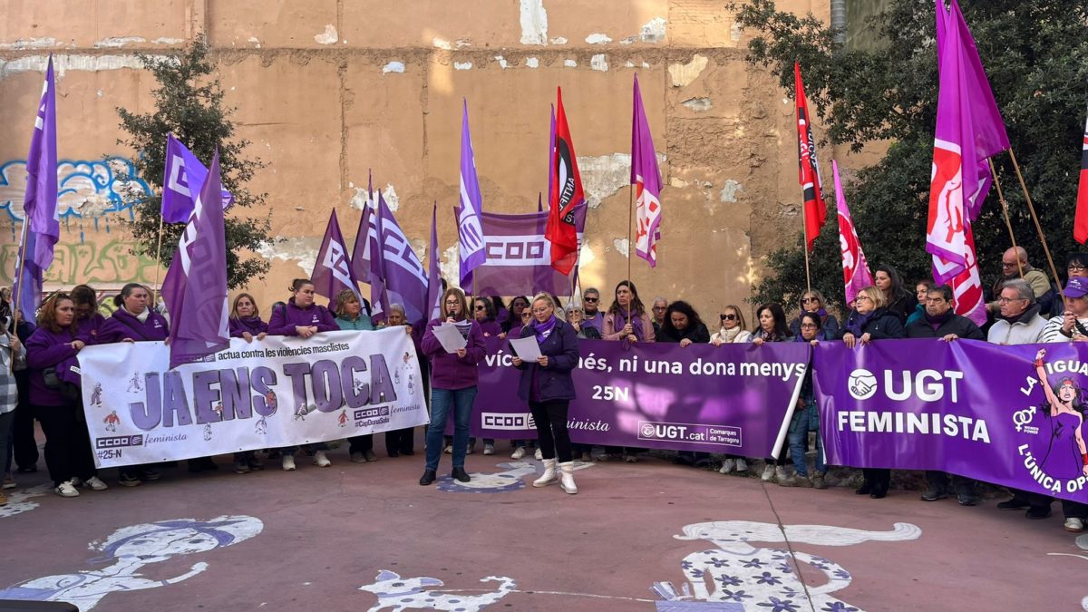 CCOO i UGT denuncien la violència masclista en totes les seves formes. Els actes de commemoració han reivindicat el dret de totes les dones a viure lliures de violències. La lectura del manifest conjunt s’ha fet a la plaça de la Dona Treballadora.