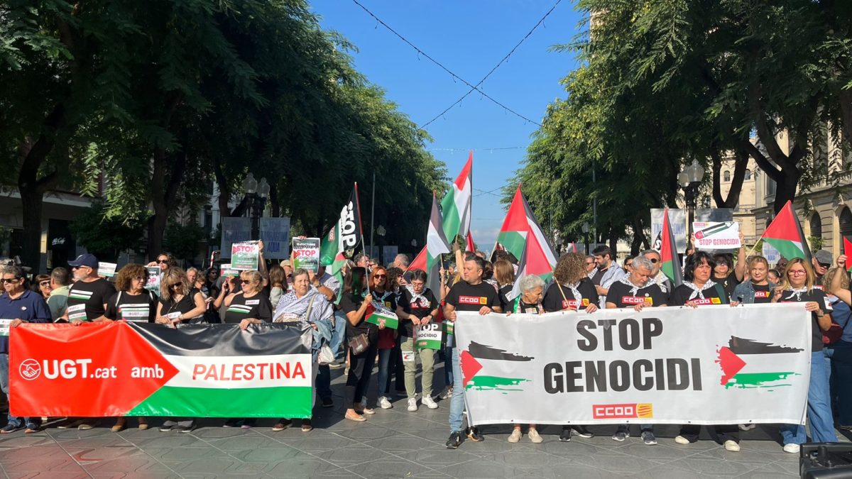 CCOO i UGT reclamen la fi al genocidi del poble palestí i condemnen la política del govern israelià. Durant aquest dimecres han convocat vaga general amb l’objectiu de visibilitzar el compromís del conjunt de la classe treballadora.