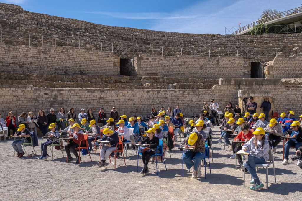Mig centenar de nens i nenes de cinquè de Primària i Secundària han participat en el dictat del topur a l’arena de l’Amfiteatre. Es tracta d’una activitat educativa inclosa al programa Tarragona, el Tour a Casa, en la qual l’alcalde de Tarragona, Rubén Viñuales, ha llegit un text d’una notícia de Tarragona Ràdio sobre la sortida de la segona etapa del Tour de França 2026, que tindrà lloc a la ciutat el 5 de juliol.