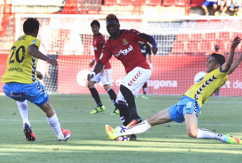 Els homes de Vicente Moreno, però, ha començat a jugar foc amb pèrdues innocents al mig del camp i el 0-1 arribaria d’aquesta manera. Un error de Zahibo en la sortida de pilota l’ha aprofitat Pedraza per desfer-se de Suzuki per velocitat i batre Saja amb un xut ras i col·locat. El Nàstic reaccionava i posava a prova José Juan amb dues rematades de José Carlos i Àlex López, però novament cauria un altre gerro d’aigua freda. Un penal clar comès per Xavi Molina, capità en substitució del lesionat Manolo Reina, l’ha transformat Joselu enganyant completament Saja.