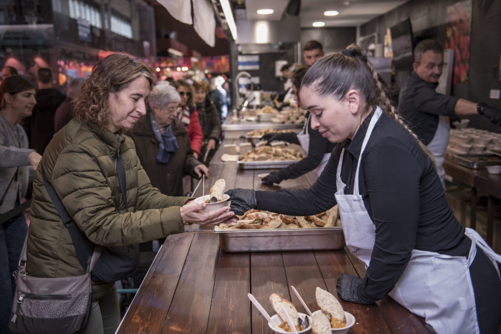 “Es tracta d’un guisat mariner de patata i peix, en aquesta ocasió rap i musclos, amb una picada de pebrot de romesco, ametlla, all rostit, julivert, oli i vinagre”, ha explicat Moreno mentre ultimava el plat, reivindicant una recepta arrelada al litoral tarragoní i amb origen a les barques del Serrallo, i al producte de proximitat que omple cada dia els taulells del Mercat.