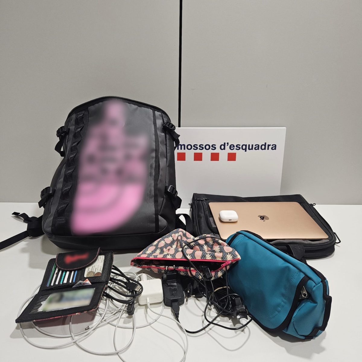 Una de les patrulles va detectar un home caminant pel carrer que, en veure la presència policial, va accelerar el pas. Els agents el van interceptar al carrer Girona. En l’escorcoll li van localitzar un ordinador portàtil i uns auriculars sense fils, tots dos propietat de la víctima. Posteriorment, els agents el van acompanyar fins al seu domicili, on va lliurar la resta d’objectes sostrets: la motxilla de viatge, una cartera amb documentació, carregadors i altres efectes.