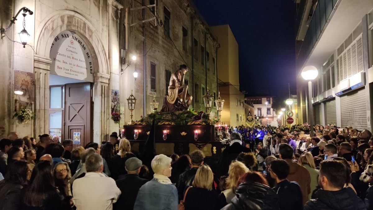 El pas del Cristo del Buen Amor sortirà de genolls de l’Església de Sant Nicolau de Bari, a Pau del Protectorat, acompanyat per l’Agrupació Musical. Les obres al carrer barcelona obliguen l’entitat a modificar lleugerament el recorregut que passarà pel carrer Santiyan.