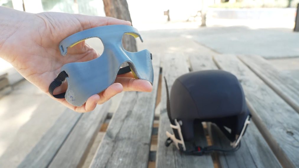 El projecte inclou repensar la protecció del terç superior de la cara, sabent que la solució no passaria per fer un casc integral com els de moto, ja que no permetria desenvolupar l’activitat com necessita la canalla, sinó que hauria de ser una peça complementària que anés ja dissenyada des de l’inici per conviure amb el casc però sent-ne una peça independent.