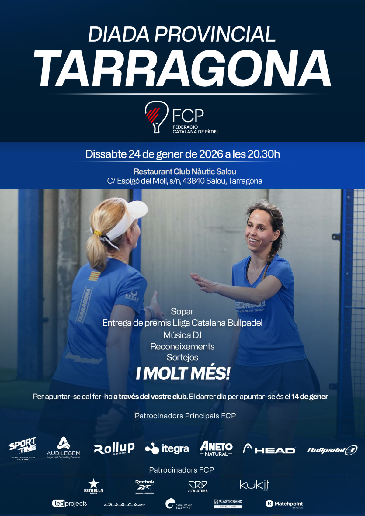 ‘Diada Provincial de Pàdel de Tarragona’. L’acte aplegarà al restaurant del Club