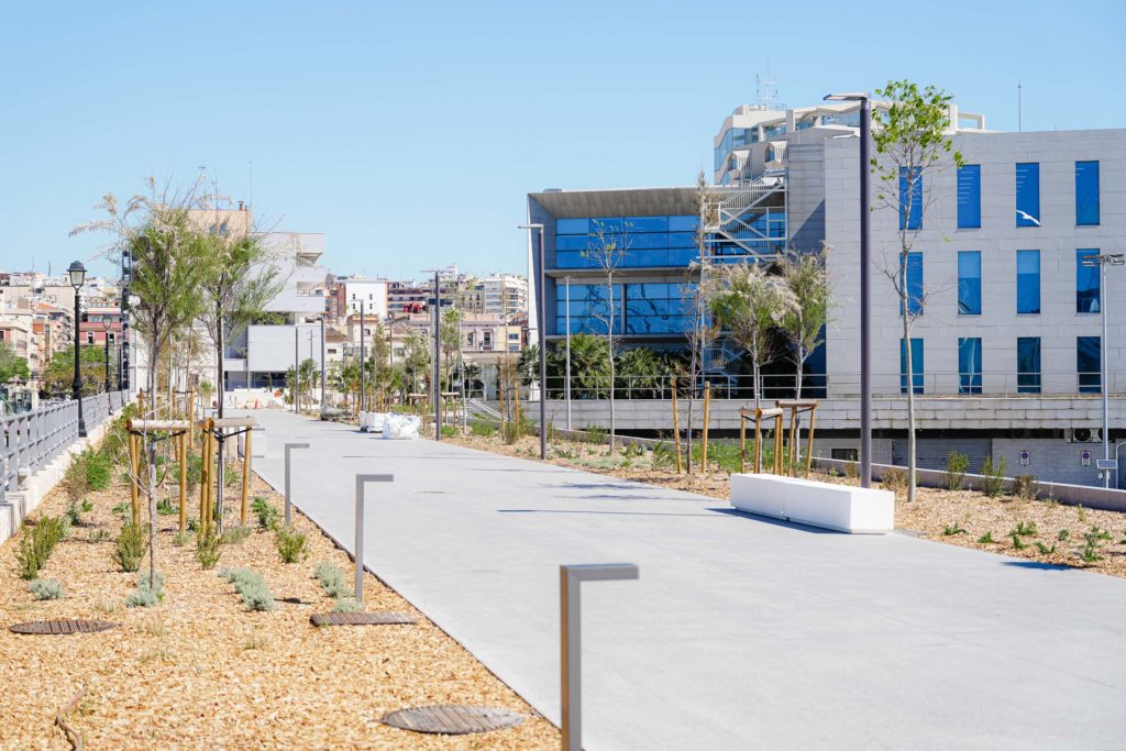 S’ha passat dels 7.000 m2 als 11.500 i s’han plantat 200 arbres i més de 14.500 plantes i arbustos. Aquesta reforma urbanística ha aconseguit un espai de confluència de gent que passeja o fa esport i que compleix com a refugi climàtic a tocar del mar. Es crea la nova Plaça de l’Autoritat Portuària i es transforma el passeig del Rellotge del Port i el Km0 a la vora del mar. Tot plegat millorarà la connectivitat de la façana marítima.