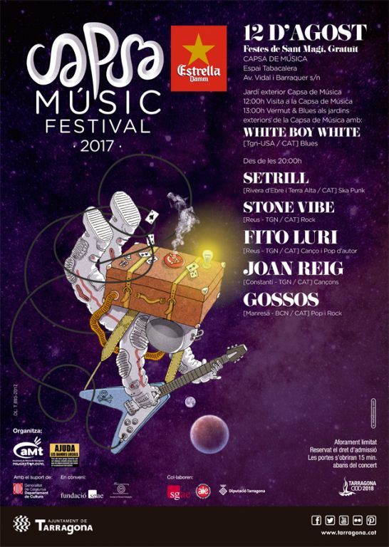 El grup Setrill, format per músics de la Ribera d’Ebre i de la Terra Alta, seran els encarregats d’inaugurar el festival amb el seu ska-rock a les 20:00h. Seguit del grup Stone Vibe que presenten el seu primer EP i són els guanyadors del segon concurs musical ‘Reus Sona’.