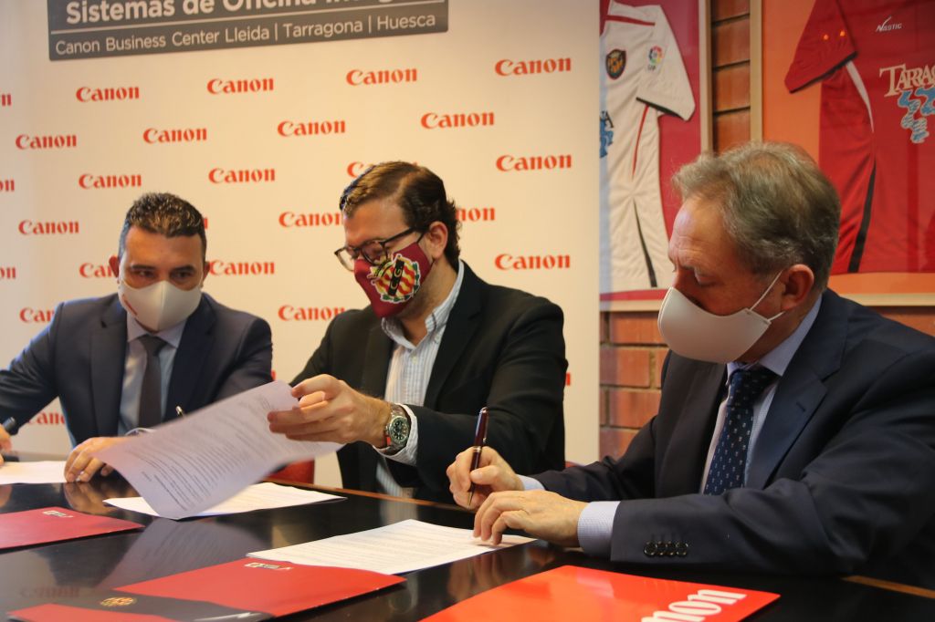 El Gimnàstic de Tarragona i Canon Business Center a Tarragona tanquen un conveni de col·laboració que unirà a les dues entitats pels propers cursos esportius, concretament fins al 30 de juny 2023. L’empresa especialitzada en la fabricació de productes per a l’obtenció d’imatges i instruments òptics, com càmeres, videocàmeres, impressores i fotocopiadores, dóna suport al Nàstic.