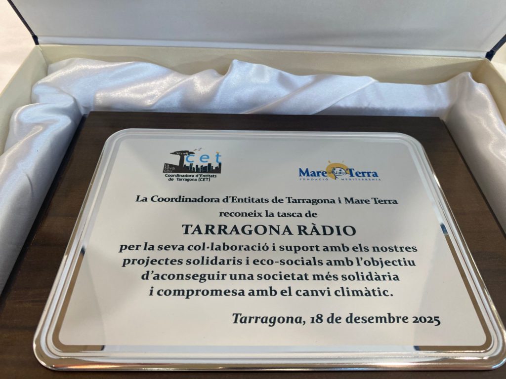El teixit social i associatiu de Ponent ha reconegut la trajectòria i la tasca de Tarragona Ràdio. La Coordinadora d’Entitats de Tarragona (CET) i Mare Terra Fundació Mediterrània han atorgat un dels seus guardons anuals a l’emissora pública, pel suport constant als seus projectes solidaris i per fer de pont i altaveu del centenar d’entitats que en formen part.