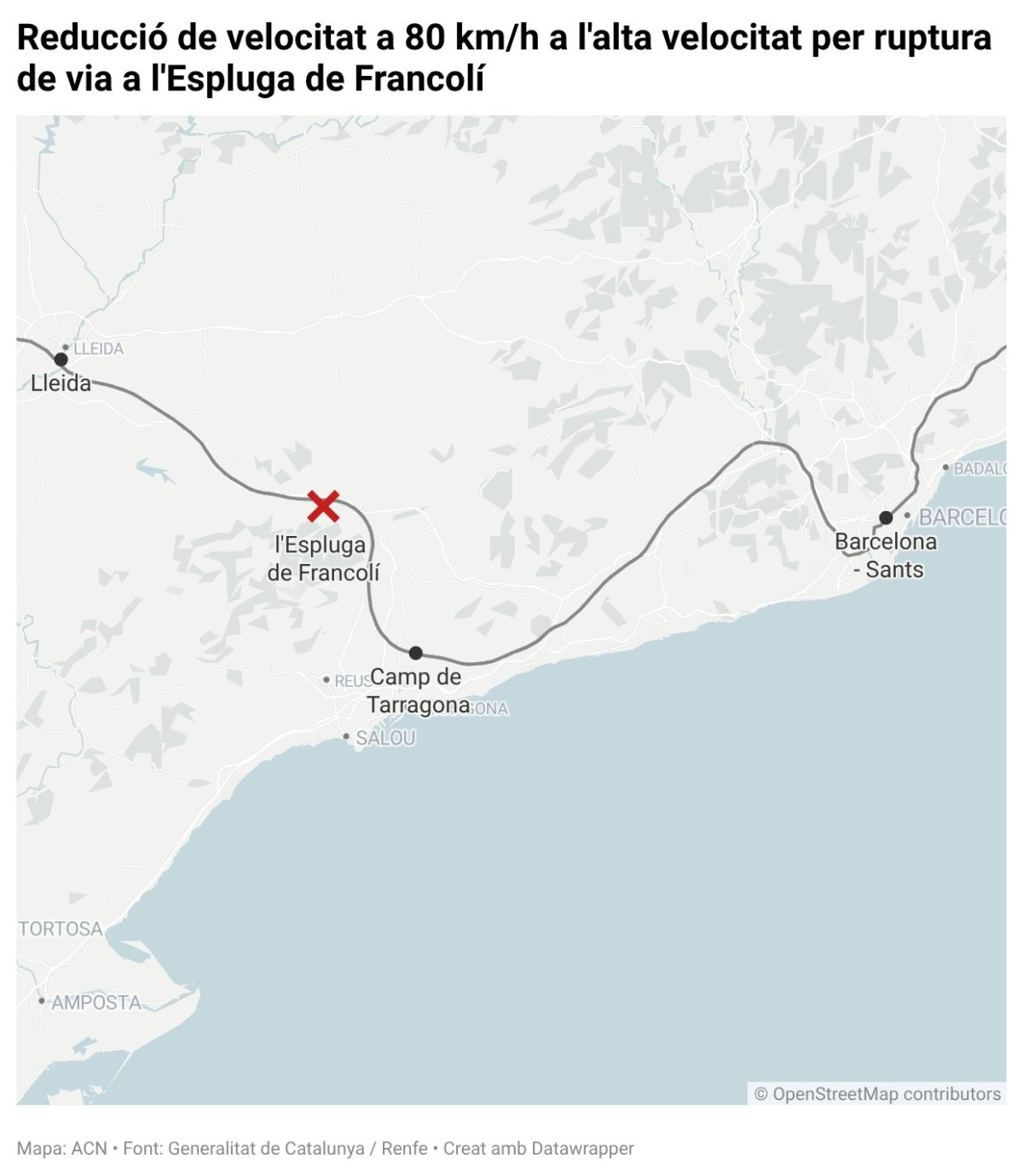 La Plataforma d’Usuaris Avant Catalunya alertava “fa temps” de “vibracions anòmales” al tram on s’ha trencat la via a l’Espluga de Francolí. La ruptura detectada a la via d’alta velocitat ha obligat Adif a reduir la velocitat a 80 quilòmetres per hora durant un tram del recorregut. Els usuaris afirmen que fa “anys” que es queixen de les “possibles deficiències estructurals” en aquest punt, i subratllen que l’incident detectat ara “incrementa la preocupació” entre les persones que utilitzen el transport públic. Segons afirma la plataforma, tot i que el Departament de Territori “assegura” que el tram es revisa diàriament, els fets “demostren que aquestes inspeccions no són suficients o no estan detectant els problemes reals”.