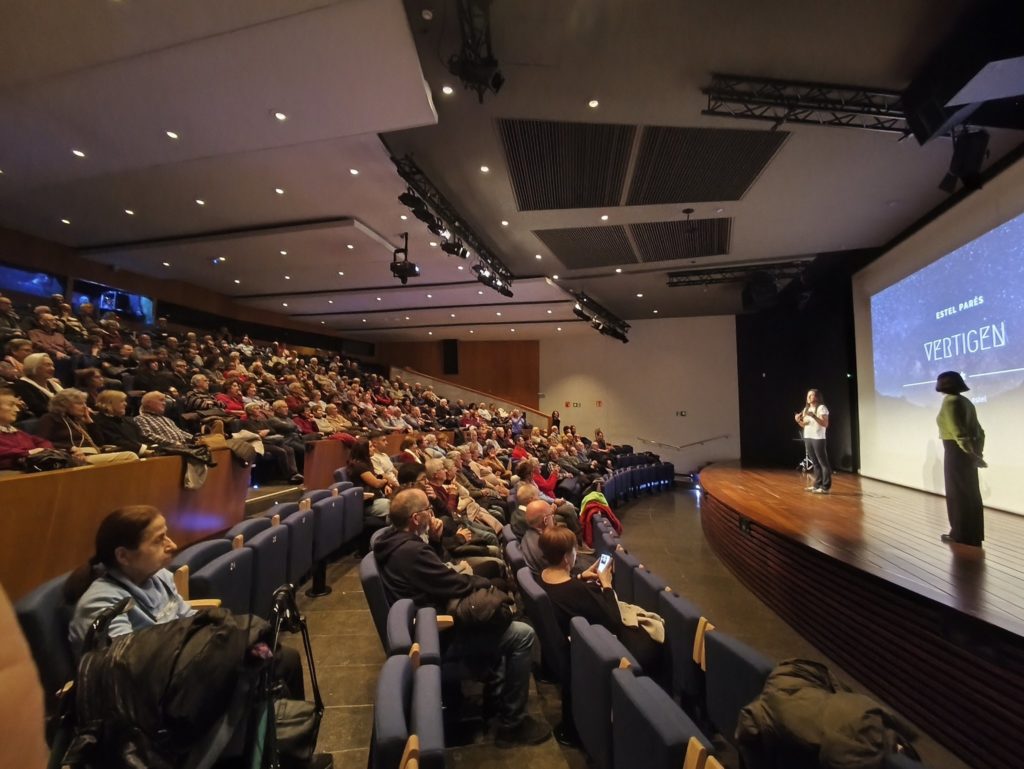Dijous passat, Estel Parés va transformar l’auditori de la Diputació en un vertigen d’emocions i adrenalina en la tercera parada del Cicle de Muntanya. Amb la projecció de Vertigen, va portar el públic a l’alçada de les seves aventures més intenses, els projectes més ambiciosos i els imprevistos més inesperats —com aquell dit trencat quan ja ho tenia tot a punt per conquerir Yosemite, després de molt d’esforç. Històries que no només expliquen què és escalar, sinó què significa viure-ho: aprendre a tirar endavant amb cada empenta… i també saber fer mitja volta quan cal. “De tot se n’aprén”, conclou.