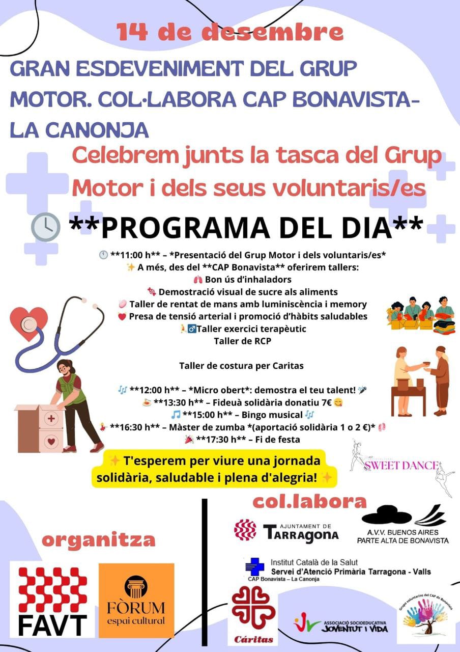 La jornada comptarà amb la participació i la col·laboració de Joventut i Vida, Càritas Bonavista, els mateixos voluntaris, el CAP de Bonavista i La Canonja,