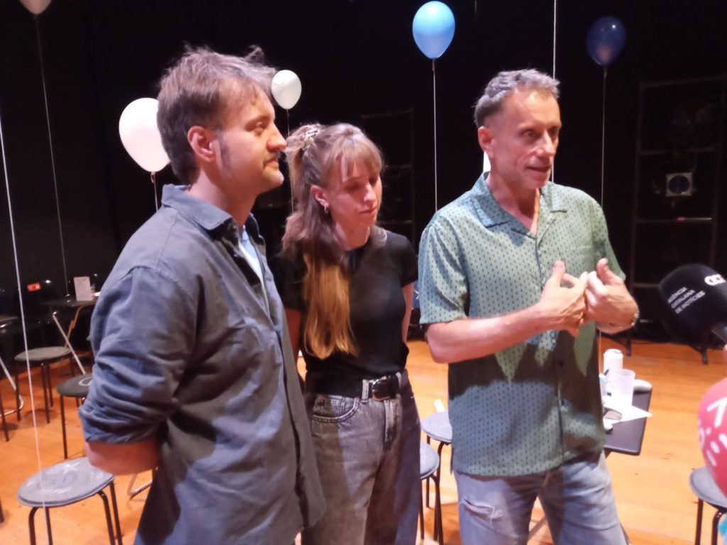 Les veus dels adolescents entrevistats, però, no l’escoltem. En escena hi tenim tres actors que passen dels 60 i que reprodueixen literalment les paraules dels joves, que escolten a través d’un auricular. És el “mètode verbatim“, que ja van usar a “Iaia” i que implica una manera especial de treballar pels actors.