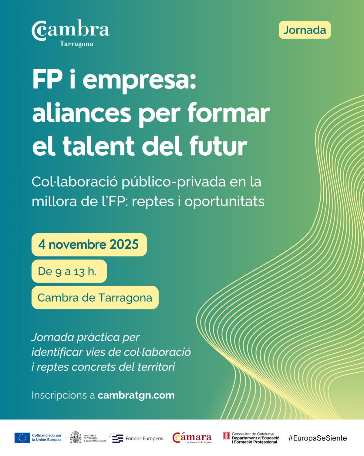 La Cambra de Tarragona ha programat una jornada centrada en debatre i potenciar les aliances entre la Formació Professional i les empreses per tal de formar el talent del futur.