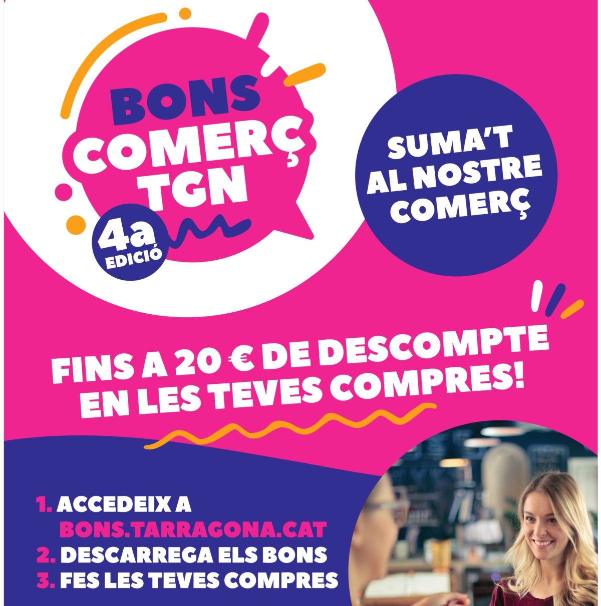 La quarta campanya dels Bons Comerç d’enguany s’iniciarà el mateix 7 de novembre i es perllongarà fins al dia 22. A través dels bons de 5 euros de descompte, la iniciativa pretén promoure la compra als comerços de proximitat tarragonins. En total, es repartiran 30.000 bons —xifra que suposa una dotació municipal de 150.000 euros—. Cada ciutadà podrà adquirir fins a quatre bons, que tindran una caducitat setmanal.