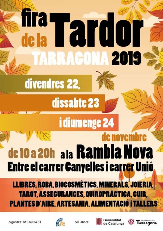 La Fira de la Tardor arriba aquest cap de setmana a la ciutat. Ho fa amb una novetat important: torna a la Rambla Nova després de dos anys celebrant-se a la plaça Corsini. Impulsada per Botiguers de Tarragona, la Fira de la Tardor s’instal·larà en el tram entre el carrer Canyelles i el carrer Unió. Comptarà amb una seixantena de parades. Es tracta d’una fira dedicada a diferents sectors, com ara artesania, alimentació, joieria o roba. També hi haurà espai per biocosmètics, llibres, quiropràtica o tarot.