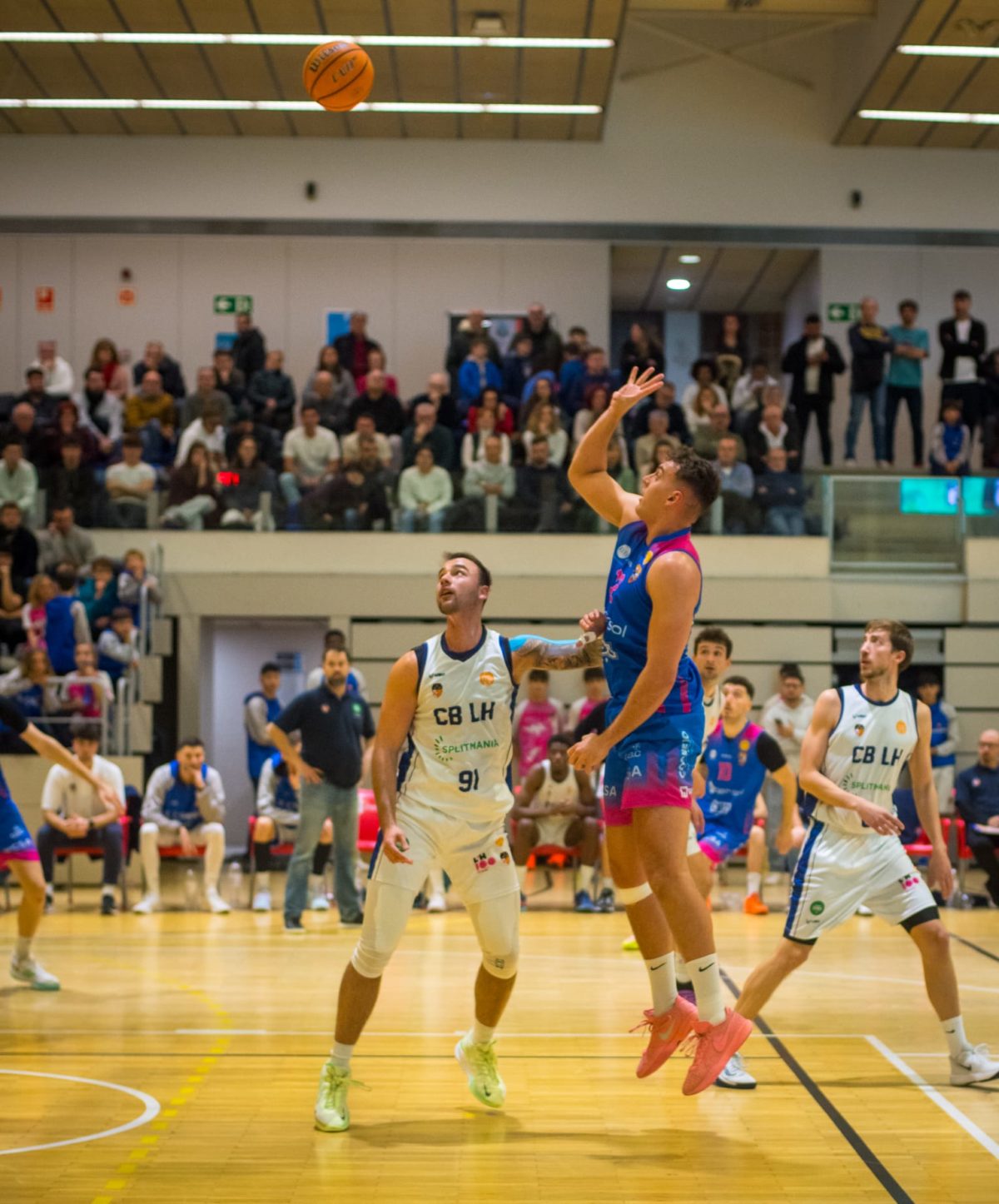 Alley hoop d’Stefanuto per a Buscail per obrir el segon període. L’aler gallec posava l’empat a 21 des del tir lliure, però Font insistia des dels 6,75 i protagonitzava un parcial de 7-0 que donava la màxima fins al moment per a l’Hospitalet: 28-21. Després del temps mort, els de Toni Larramona reduïen la distància amb un 1-7 liderat per Stefanuto (29-28, minut 5). L’encert de Castellón i Sevillano des de la llarga distància i diverses decisions arbitrals dubtoses donaven oxigen als locals. Els blaus evitaven mals majors amb sang, suor i llàgrimes fins que Hall, amb un triple, tornava a empatar, aquest cop a 38. En el tram final, nova embranzida local per marxar als vestidors amb un 44-40 que deixava el partit absolutament obert.