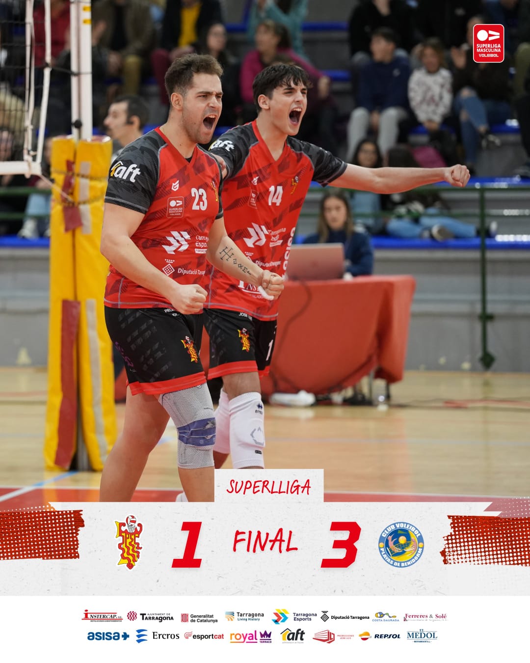 L’Instercap Asisa Tarragona SPSP no va poder sumar la primera victòria davant la seva afició i va caure per 1-3 davant el Servigroup Playas de Benidorm en un partit en què els rojillos van competir amb intensitat malgrat la superioritat visitant. Amb el suport constant de la graderia del pavelló cooperativista, els tarragonins van aconseguir empatar el xoc després de cedir el primer set (15-25), imposar-se en un emocionant segon parcial (28-26), però