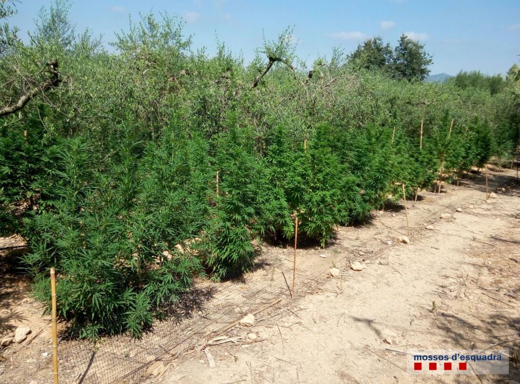 La patrulla va localitzar l’origen de les olors després de seguir un camí que discorria per l’interior d’un mas on hi havia una bassa d’aigua i un camp d’oliveres. En aquella zona, els agents van localitzar, amagades entre les oliveres, un gran nombre de plantes de marihuana, unes 175, de gairebé 2 metres d’alçada.