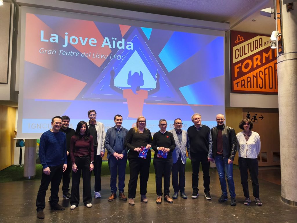 La jove Aïda’ és una readaptació dramatúrgica, musical i escènica que presenta una jove heroïna creadora de videojocs com a protagonista. L’Aina és el personatge que es posa a la pell d’Aïda després d’endinsar-se en una realitat virtual que ella mateixa ha creat, on ha de superar reptes i complicacions. L’obra no deixa de banda els grans temes que tracta l’òpera de Verdi, com la traïció, l’honor i la pàtria, però els acosta al jovent amb un llenguatge i un context adaptat al context actual i amb els videojocs com a punt de partida. “Hi ha un joc entre la realitat i la ficció al voltant de com entrem i com ens involucrem en les històries que és molt present pels espectadors joves, ja sigui perquè miren dibuixos, pel·lícules, llegeixen llibres o còmics. A partir d’aquí els podem explicar qüestions més complexes com les que tenen les obres clàssiques com ‘Aïda'”, ha destacat el director Jordi Casanovas.