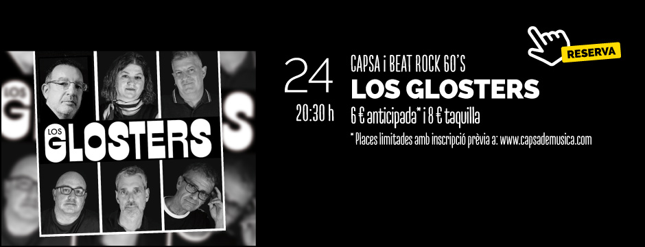 Els Glosters ens diuent d’aquest concert: “Estimats Amigues, el proper Divendres 24 d’Octubre, Los Glosters actuaran per primera vegada a la Capsa de Música de Tarragona. Per 6 euros (anticipada) assistiràs a una mena d’esdeveniment cada vegada més estrany: uns tius que canten sense autotune i toquen els seus instruments amb certa destresa i poca vergonya. Per celebrar aquest esdeveniment, el directe s’enregistrarà i s’editarà. T’ho perdràs? Punxa l’enllaç, que et quedes sense entrada…