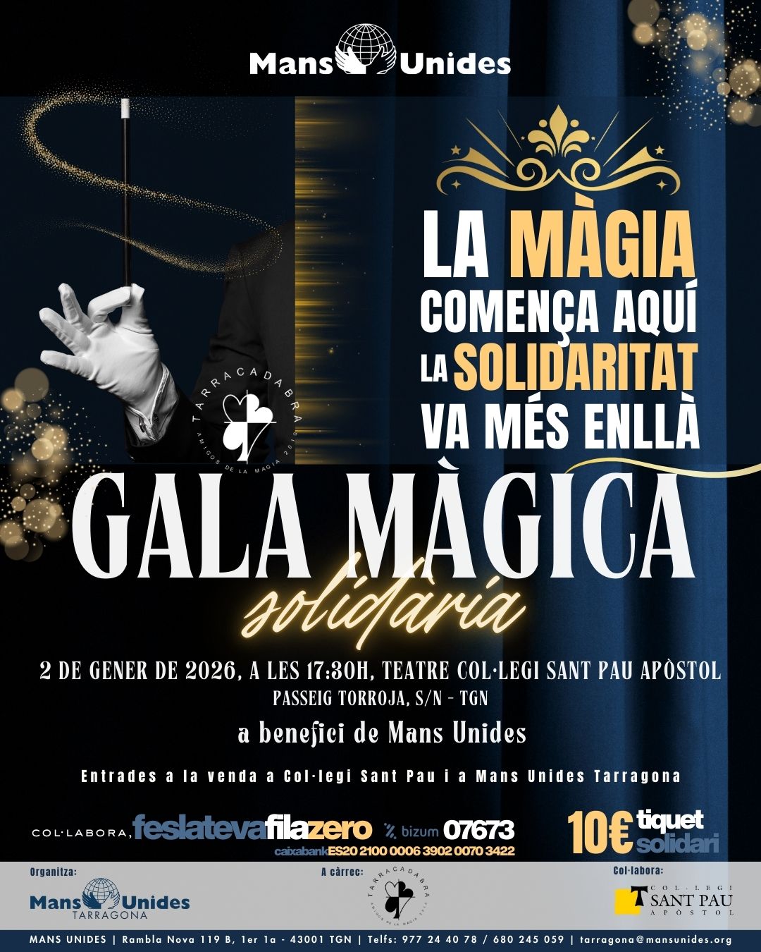 Aquesta gala màgica destinarà els seus beneficis a Mans Unides, contribuint als seus projectes de desenvolupament als països del Sud.
