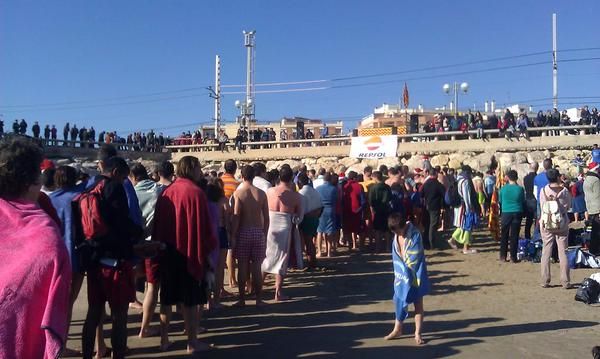 Després de la remullada, els banyistes han rebut racions de caldo ben calent, neules, una samarreta i cava.