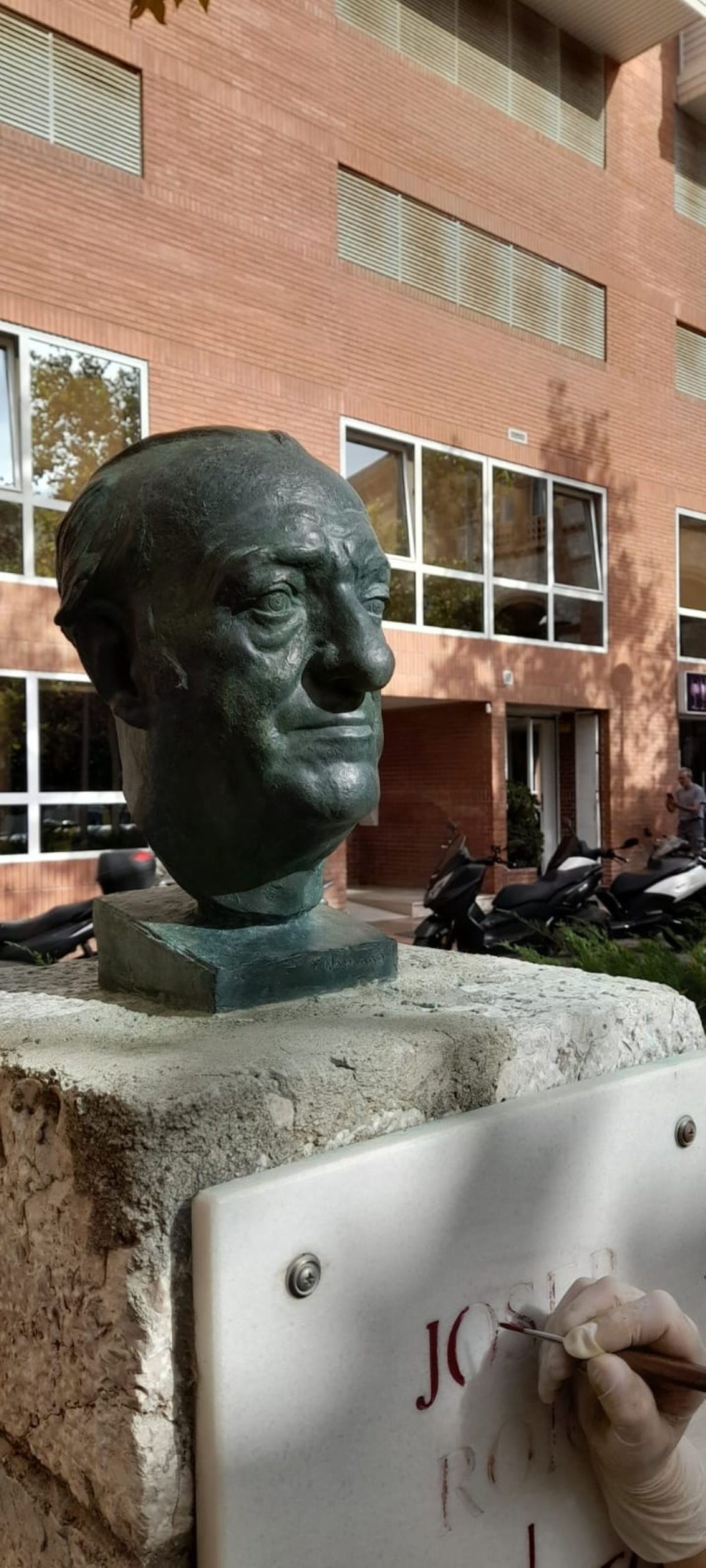 Els treballs, segons informa l’Ajuntament, han consistit en esborrar parts vandalitzades tipus grafits; netejar tota la superfície manualment; recuperar la pàtina original de bronze amb òxids i policromar l’interior de les lletres de la placa de marbre que hi ha just a sota el bust.