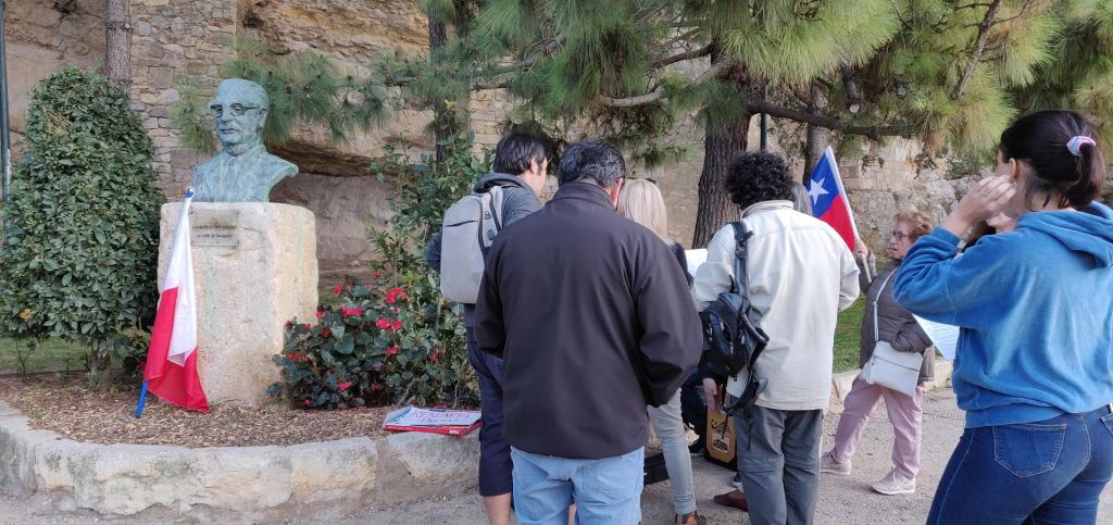 Al voltant d’una vintena de xilens s’han reunit a l’estàtua de Salvador Allene -qui va ser president de Xile- als Jardins del Camp de Mart. El dimarts passat ja es van concentrar per tal de protestar contra el govern de Sebastián Piñera i una setmana després ho han tornat a fer per continuar amb les demandes i manifestacions que s’estan portant a terme al seu país.
