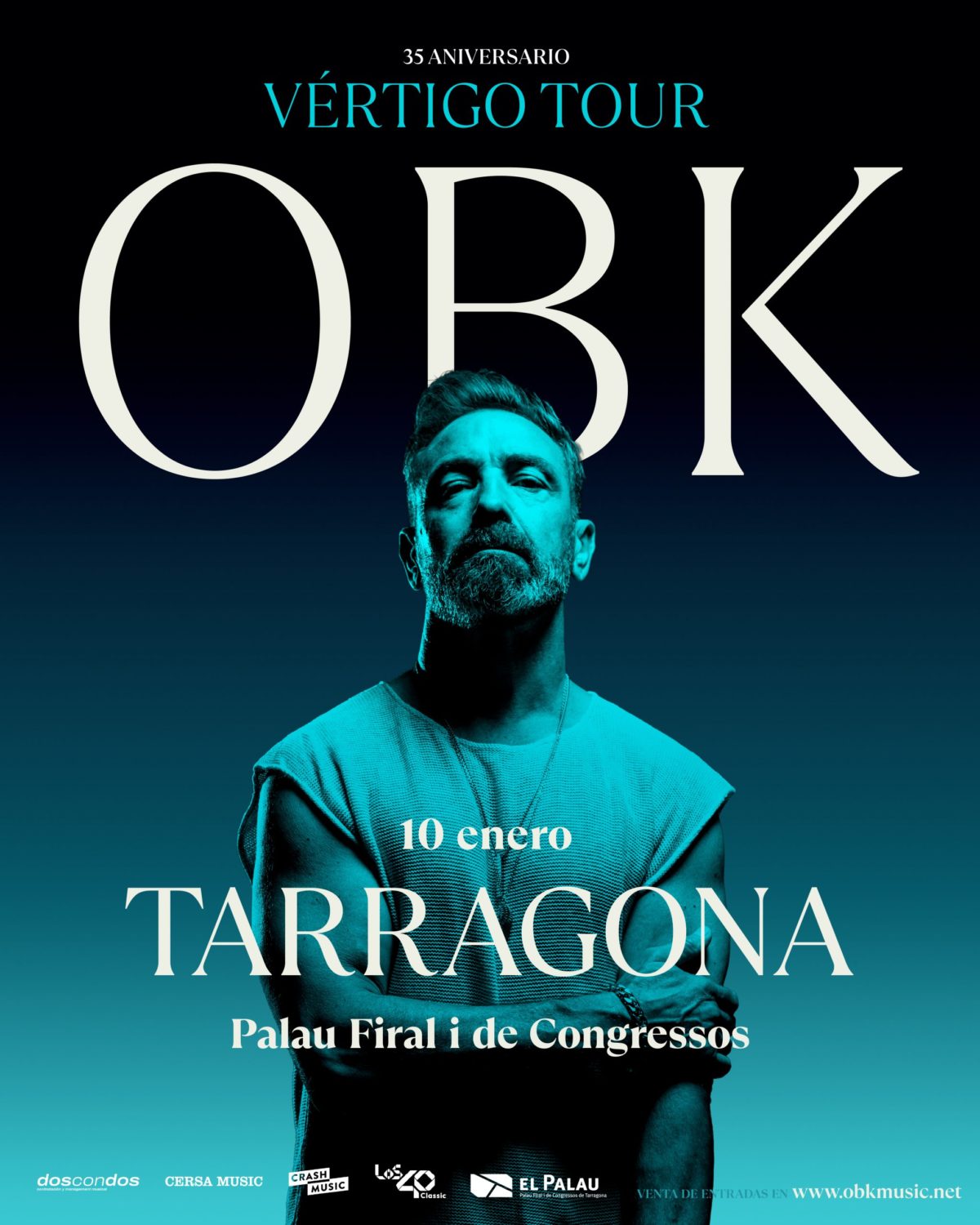 Dins del seu: Vértigo Tour, Obk ens ofereix a Tarragona un concert ple d’energia. Jordi Sánchez ens diu:” que es troba en una de les etapes més dolces de la seva vida professional, recollint els fruits de dècades de treball constant” El concert començarà ales 20:00h al Palau Firal de Congressos de Tarragona.