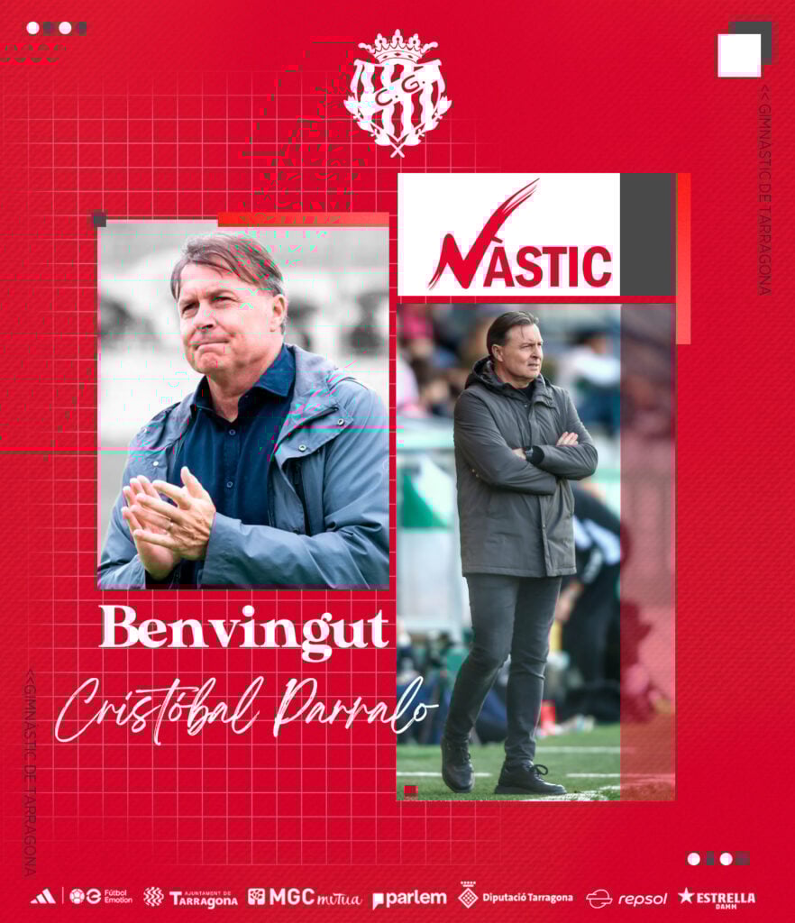 El Gimnàstic de Tarragona arriba a un acord amb Cristóbal Parralo Aguilera (Priego de Córdoba, 21 d’agost de 1967) perquè el tècnic andalús dirigeixi al primer equip grana 2025-2026 a la Primera Federación Versus e-Learning.