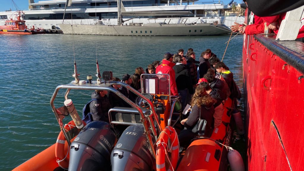 Aquest dimecres, un grup de joves d’un Grau Superior en salvament i socorrisme de l’Institut Jaume I de Salou han fet un simulacre amb la tripulació del vaixell.