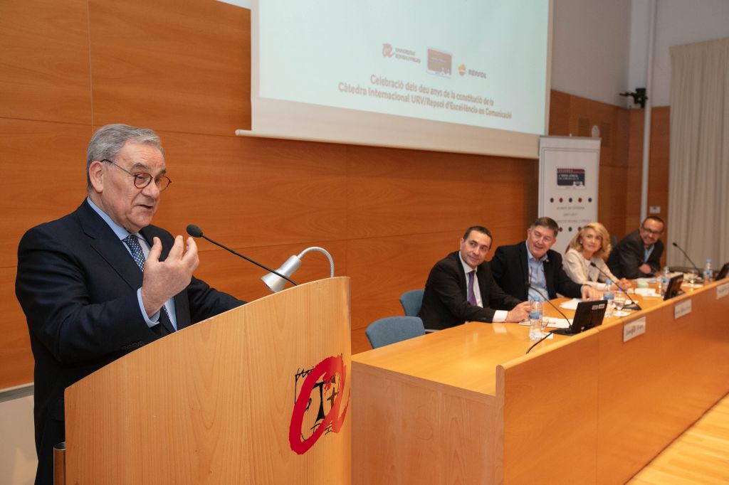 Es compleixen 10 anys de la Càtedra Internacional de la URV/Repsol d’Excel·lència en Comunicació, i aquest dimecres la companyia i la universitat han renovat el conveni en un acte al Paranimf del Rectorat. Repsol contribuirà amb 100.000 euros en els propers tres anys, perquè la Càtedra segueixi desenvolupant activitats de formació, recerca i divulgació científica d’alt nivell en l’àmbit de la Comunicació. El periodista Lluís Foix ha pronunciat la conferència “El periodisme en temps de canvi” durant l’acte commemoratiu. En els seus 10 anys d’existència, la Càtedra Internacional ha publicat 63 articles en revistes d’impacte, 14 llibres i desenes de capítols, ha atorgat 54.000 euros en beques a alumes del MASTERDEC, ha aconseguit que se li aprovessin 79 sol·licituds en convocatòries competitives, ha realitzat 25 estades de recerca internacional, se li han reconegut 24 acreditacions (de la Generalitat i el Ministeri) i ha defensat 20 tesis doctorals. Actualment, la URV té en marxa 14 càtedres per a la difusió del coneixement i la innovació en diferents àmbits, des del desenvolupament sostenible a la innovació empresarial, passant per l’habitatge o la privadesa de dades, en col·laboració amb diferents empreses i institucions del territori. En una entrevista a Tarragona Ràdio, el seu director, Jordi Farré, valora aquests deu anys i destaca tota la feina feta.
