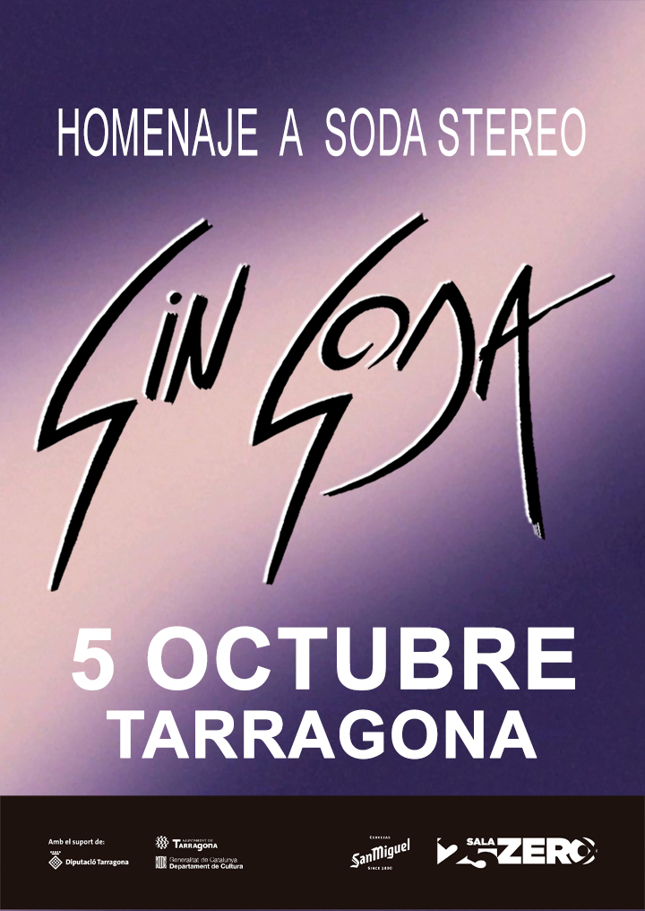 La banda homenatge al grup argentí, Soda Estéreo, Sin Soda, ens farà gaudir d’un bon tardeo de Diumenge 5 d’Octubre a la Sala Zero. Sin Soda esta celebrant el seu 25 anys de carrera musical portant als escenaris la música i el so d’aquesta mítica banda. Es diu que Soda Estéreo tornarà el proper 2026 a l’escenari Movistar Arena, el 21 de març de 2026.