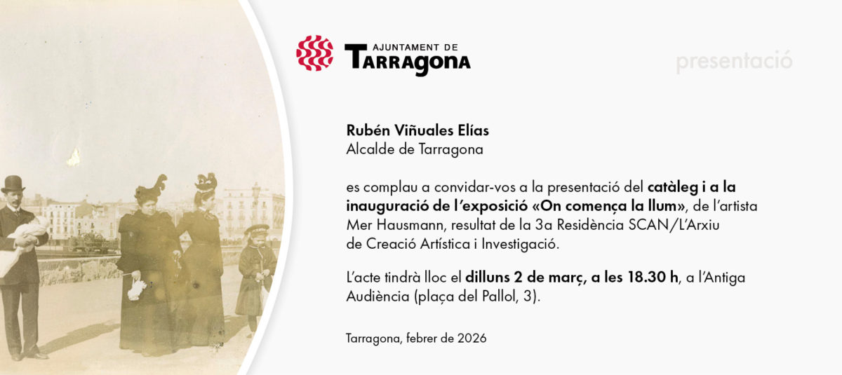 On comença la llum és el projecte resultant de la 3a Residència SCAN/L’Arxiu de Creació Artística i Investigació, un treball que reinterpreta els arxius fotogràfics històrics de Tarragona per a imaginar una nova memòria visual femenina del segle XIX, que es presenta dilluns vinent, 2 de març a les 18.30h a l’Antiga Audiència.