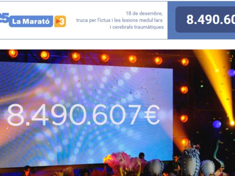 Publicado enNotícia La Marató de TV3 i Catalunya Ràdio ha superat els 8,4 milions d’euros per Redacció 19/12/2016