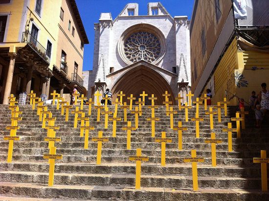 Publicado enNotícia L’ANC cobreix les escales de la Catedral amb creus per denunciar el ‘desmantellament del sistema sanitari’ per Redacció 14/08/2016