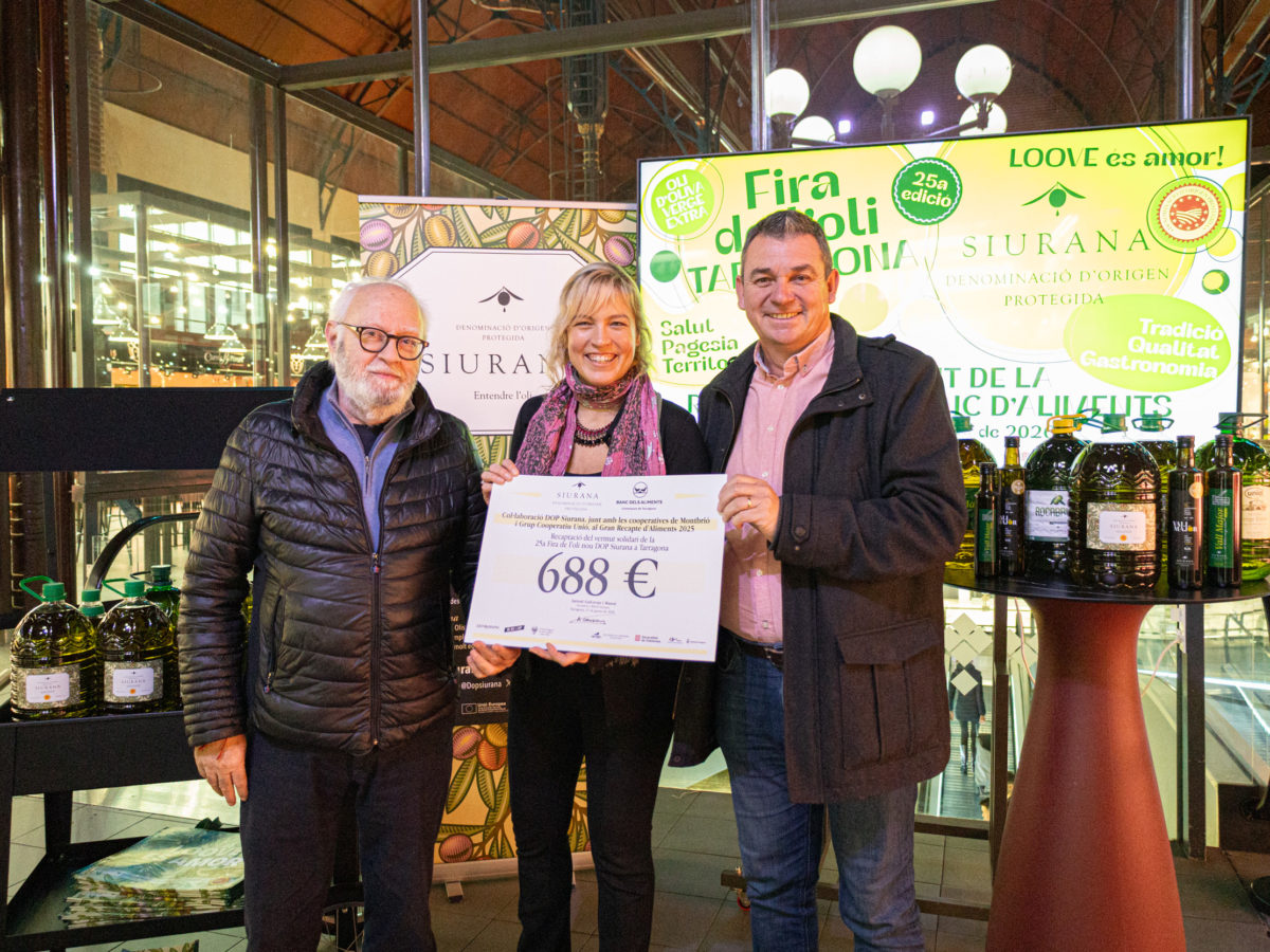 Publicado enInformatius, Solidaritat La DOP Siurana lliura 688 euros al Banc d’aliments de les comarques de Tarragona en el marc de la 25a Fira de l’Oli per Redacció 28/01/202628/01/2026 El Mercat Central de Tarragona va acollir l’acte de lliurament del xec solidari.