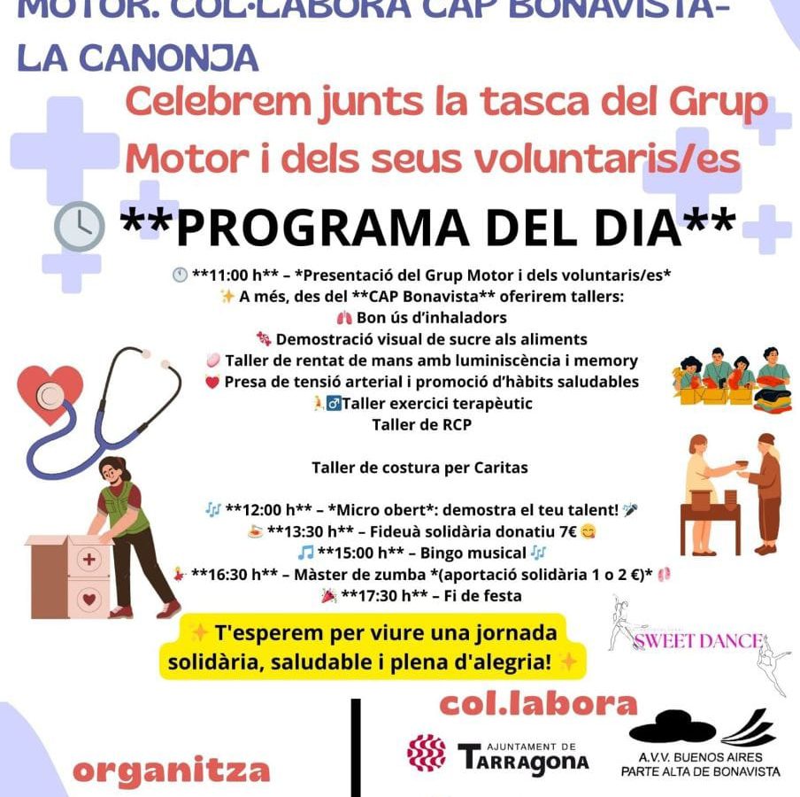 La Federació d’Associacions de Veïns de Tarragona i el Fòrum Espai Cultural organitzen una jornada de reconeixement als voluntaris del CAP de Bonavista i La Canonja.L’esdeveniment comunitari serà aquest diumenge a la Rambla de Bonavista amb l’objectiu de reconèixer públicament la tasca que desenvolupen els voluntaris del CAP de Bonavista i La Canonja.La jornada comptarà […]