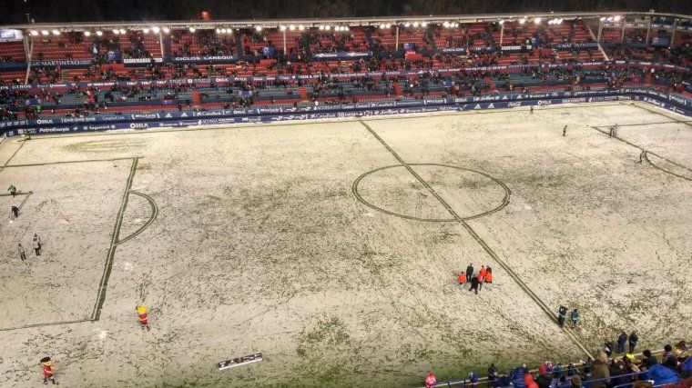 Publicado enNotícia L’àrbitre suspèn el partit entre l’Osasuna i el Nàstic per la nevada a El Sadar per Redacció 01/12/2017