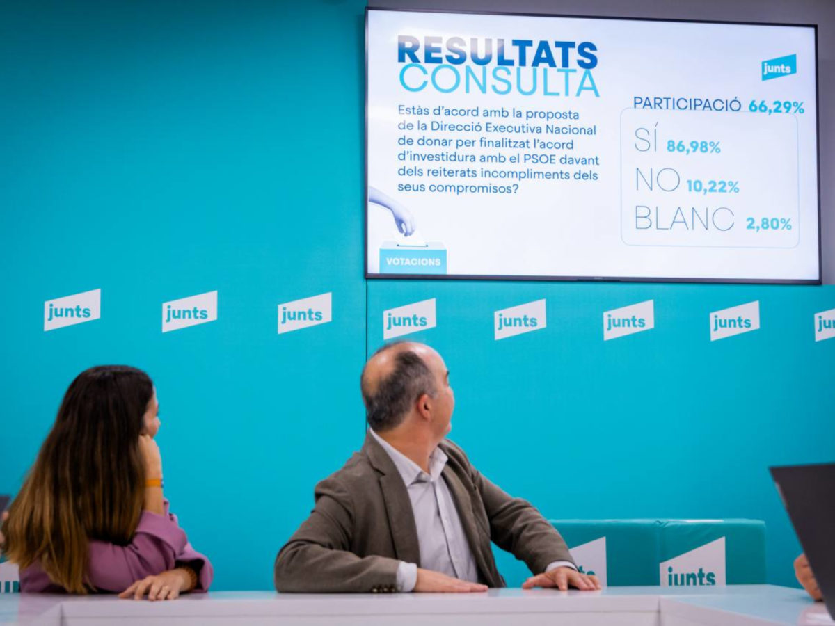 Les bases de Junts han avalat la ruptura amb el PSOE. Un 86,98% de la militància que ha participat de la consulta interna ha votat a favor del trencament amb els socialistes, i ha certificat així la decisió que ja havia pres la cúpula del partit que presideix Carles Puigdemont. Un 10,22% ho ha fet […]