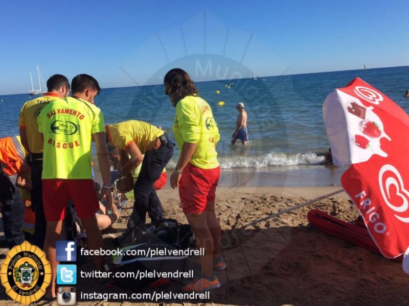 Publicado enNotícia Un banyista és rescatat de l’aigua després de patir un tall de disgestió al Vendrell per Redacció 24/08/2016