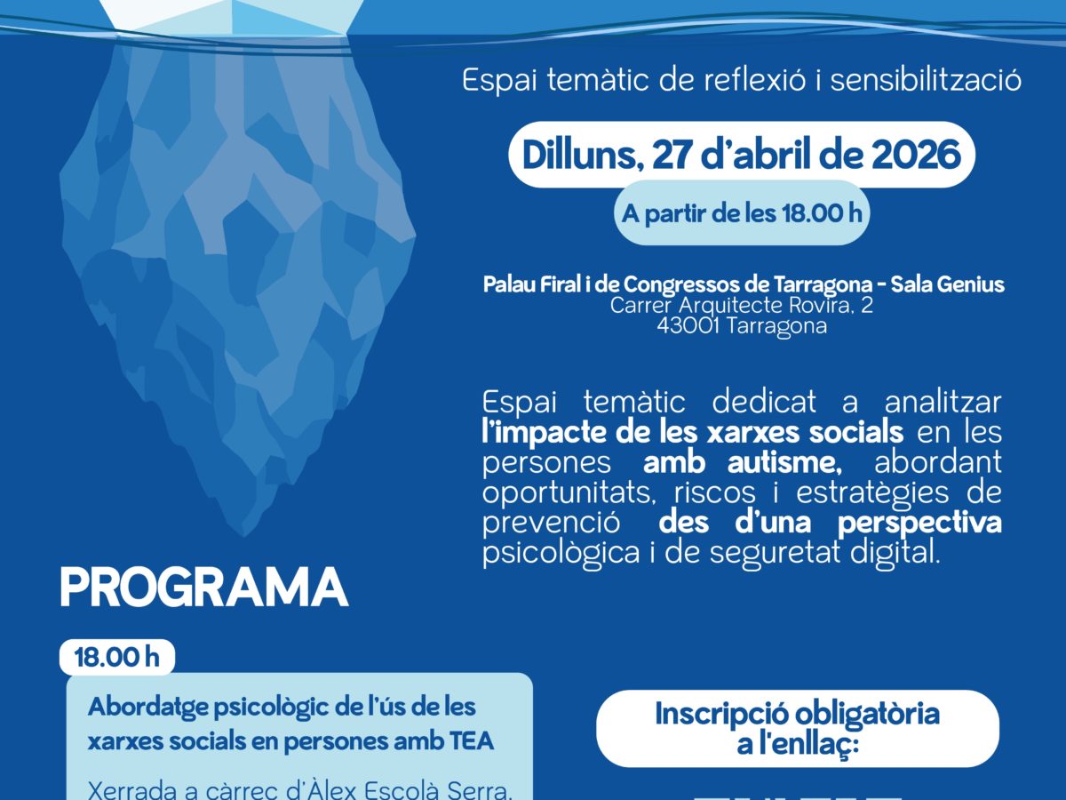 Tarragona organitza una jornada per analitzar l’impacte de les xarxes socials en persones amb autisme L’Ajuntament de Tarragona ha programat per aquest dilluns, 27 d’abril, una jornada per reflexionar sobre l’impacte de les xarxes socials en les persones amb trastorn de l’espectre autista.La iniciativa, sota el títol “Autisme i xarxes socials: comprendre, acompanyar i protegir”,tindrà […]