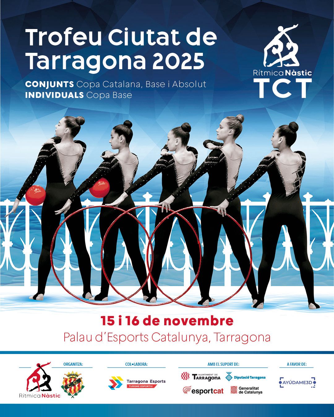 La segona edició del Torneig de Rítmica Ciutat de Tarragona, organitzat pel Club Gimnàstic amb la col·laboració de l’Ajuntament de Tarragona, també arrencarà dissabte al Palau d’Esports Catalunya. La competició, que s’allargarà fins diumenge a les 18 h, reunirà més d’un miler de gimnastes d’arreu de l’Estat espanyol de les categories base i absolutes nacionals i la Copa Catalunya. Amb el precedent de l’edició anterior, s’espera que durant el cap de setmana hi assisteixin més de 2.500 assistents.